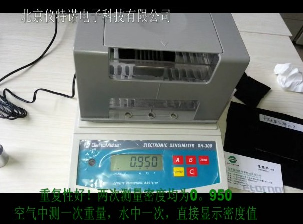 第二步:橡膠密度計(jì)記憶樣品在水中的重量,按鍵直接顯示密度值: