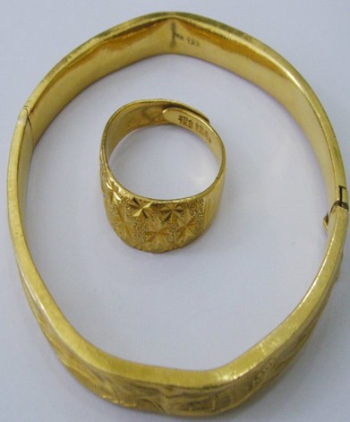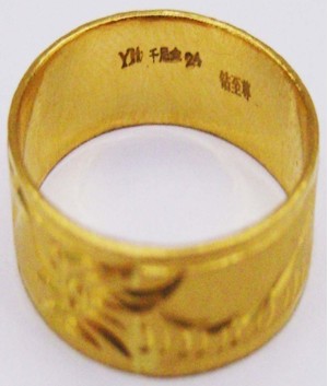 (2)看顏色:黃金首飾一般純度越高,色澤越深。正如人們常說的“七青八黃九紫十赤”,即如果金飾呈青黃色,含金量可達70%;呈黃色含金量可達80-90%;如果呈赤黃色,含金量可達95以上。當(dāng)然,僅僅憑顏色辨別黃金首飾的成色、真假是遠遠不夠的。