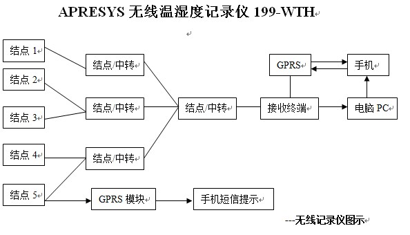 APRESYS無線溫濕度記錄儀199-WTH,嚴(yán)格意義上說來,更是一套無線溫濕度監(jiān)控系統(tǒng).利用成熟的2.4G無線網(wǎng)絡(luò)現(xiàn)實(shí)通訊,實(shí)現(xiàn)長距離(點(diǎn)到點(diǎn)視距500-1000米,網(wǎng)絡(luò)覆蓋可達(dá)五平方公里在),多點(diǎn)(小于等于500結(jié)點(diǎn))的局域環(huán)境溫濕度監(jiān)控,更利用GPRS通訊技術(shù),實(shí)現(xiàn)跨地區(qū),省市甚至跨國際的環(huán)境溫濕度遠(yuǎn)程控制.與傳統(tǒng)無線技術(shù)相比,有了質(zhì)的飛躍.